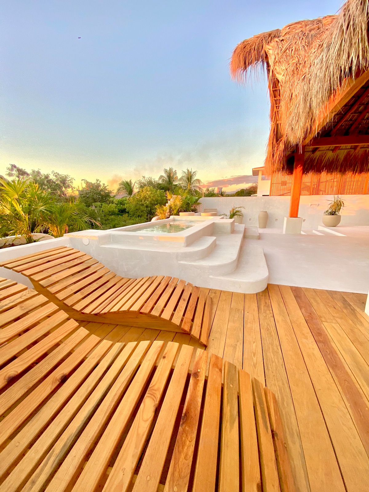 美麗寬敞的套房,配有加大雙人床、50 吋旋轉電視、冷氣、廚房、浴室和私人泳池。 感受寧靜,在私人泳池的漩渦中放鬆身心,享受舒適的住宿體驗。 我們位於Punta Zicatela ,步行7分鐘即可抵達海灘、主要衝浪地點、餐廳、酒吧和購物區。 靠近一切,但遠離派對的喧囂。 我們有Starlink網路