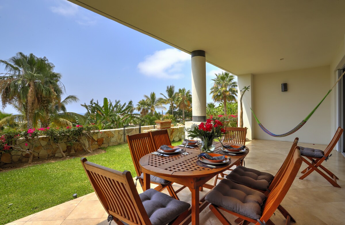 體驗全新豪華的2間臥室、2間浴室一樓公寓,可欣賞太平洋全景。 這間公寓位於洛斯卡波的獨家門禁主計劃社區Copala at Quivira內,可欣賞海景和眾多度假村設施。 設施包括健身房、距離露臺幾步之遙的泳池、市場、電影房和整個Pueblo Bonito Sunset社區的5美元接駁服務。 我們提供禮賓服務,確保您充分享受假期。