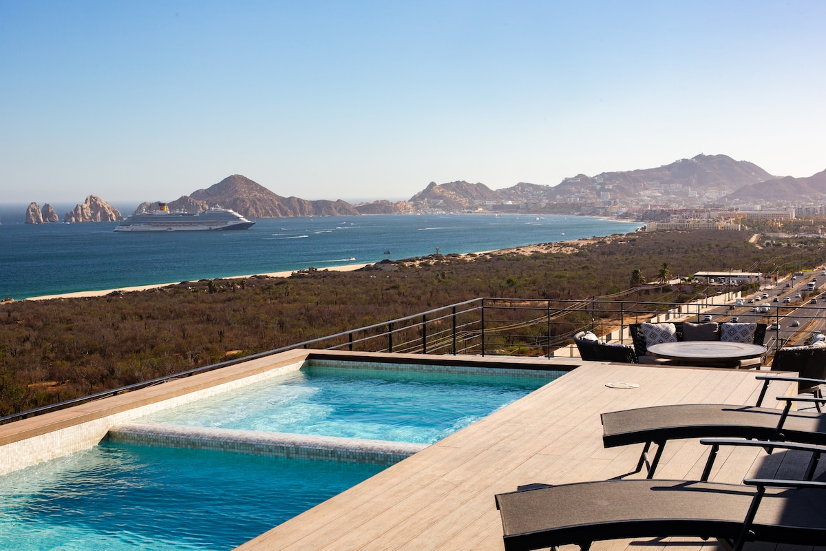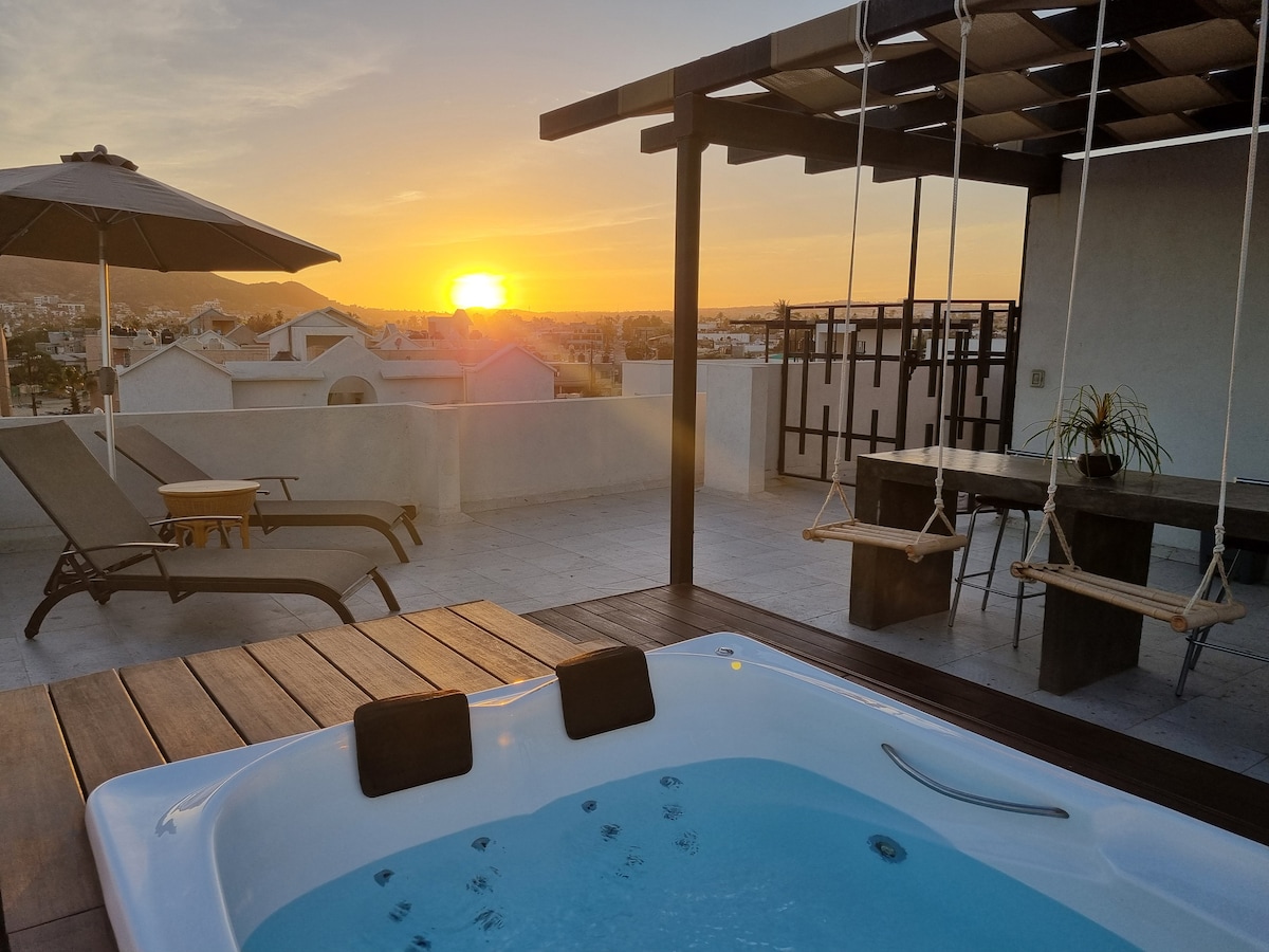 ¡歡迎來到您在卡波聖盧卡斯的獨家出發地! 這間現代化的雙臥室公寓可欣賞洛斯卡沃斯灣的壯麗景色。 擁有100平方公尺的空間,非常適合想要一起享受難忘假期的家庭和朋友團體。 在屋頂泳池中放鬆身心,欣賞令人嘆為觀止的海灣景觀和迷人的日落。 立即預訂,在洛斯卡沃斯體驗極致的舒適和個性化關注」