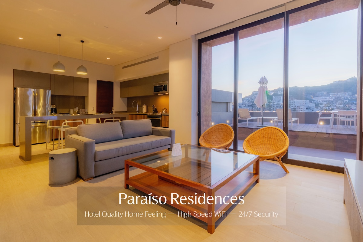 查看我們的評價! 全新私人頂層公寓,位於卡波聖盧卡斯市中心盡頭的山上,就在華爾道夫阿斯托里亞度假村上方,美麗、安全、私密的佩德雷加爾社區內,設有海灘入口泳池。 景觀迷人。步行5分鐘即可抵達市鎮、碼頭、海灘、餐廳、水上活動、購物和遊覽。 禮賓服務、兩間現場餐廳、皮克球/網球場、健身課程、私人海灘。 無鑰匙主入口。需要另一間房間嗎? 請參閱 Air B N B. com/room/16557152
