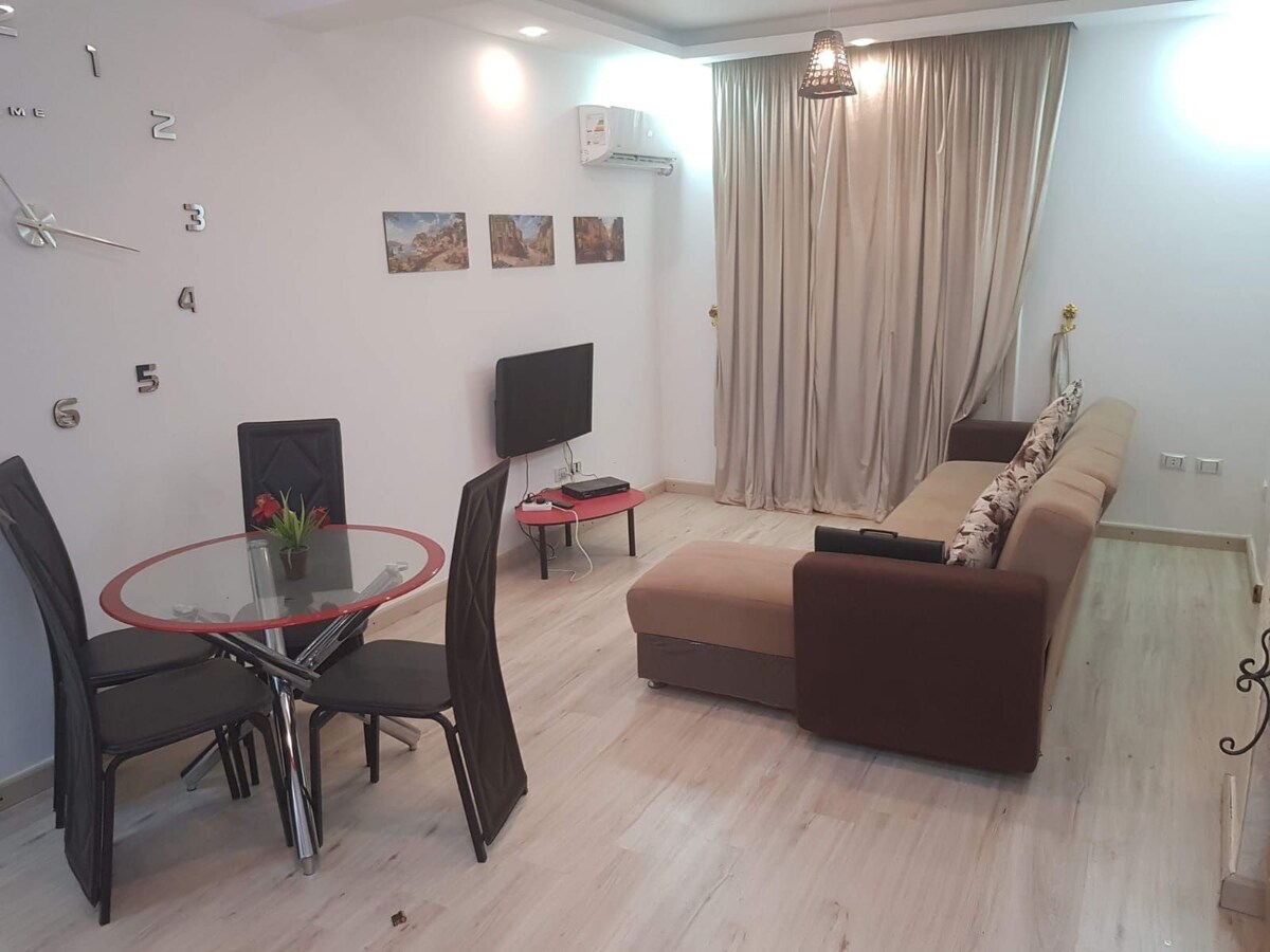 Experience the ultimate in modern comfort in our new 2-bedroom,1sofa bed 2-bathroom apartment suitable for 5 persons,Every inch of this stylish space is new and designed to make your stay unforgettable Our apartment is perfect for families or a business trip. You’ll find all the amenities you need, including a fully equipped kitchen, a comfortable living area Located in a prime compund, you’re just a short way from restaurants,shops in tagamoa and naser city Book now,,We can’t wait to host you!