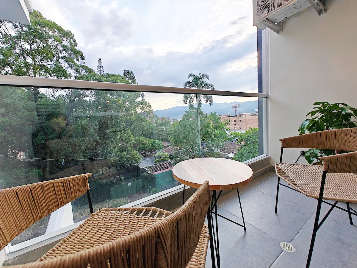 • Amazing location in heart of Poblado: "Oasis in the middle of the best part of the city, walking distance to everything” • Modern, fully furnished Loft • Ultra High speed 200 Mb WiFi Fiber Optic • Loads of nature around • Great Balcony and Views • A/C • Pool + Hot Tub in the common areas • 5 mins walk to best restaurants, cafes, malls. 22 mins walk to Poblado and Lleras Park • Fully stocked kitchen • 43" Smart TV w/ all Apps • Transparent prices: No service or cleaning fee • On site 24/7 staff