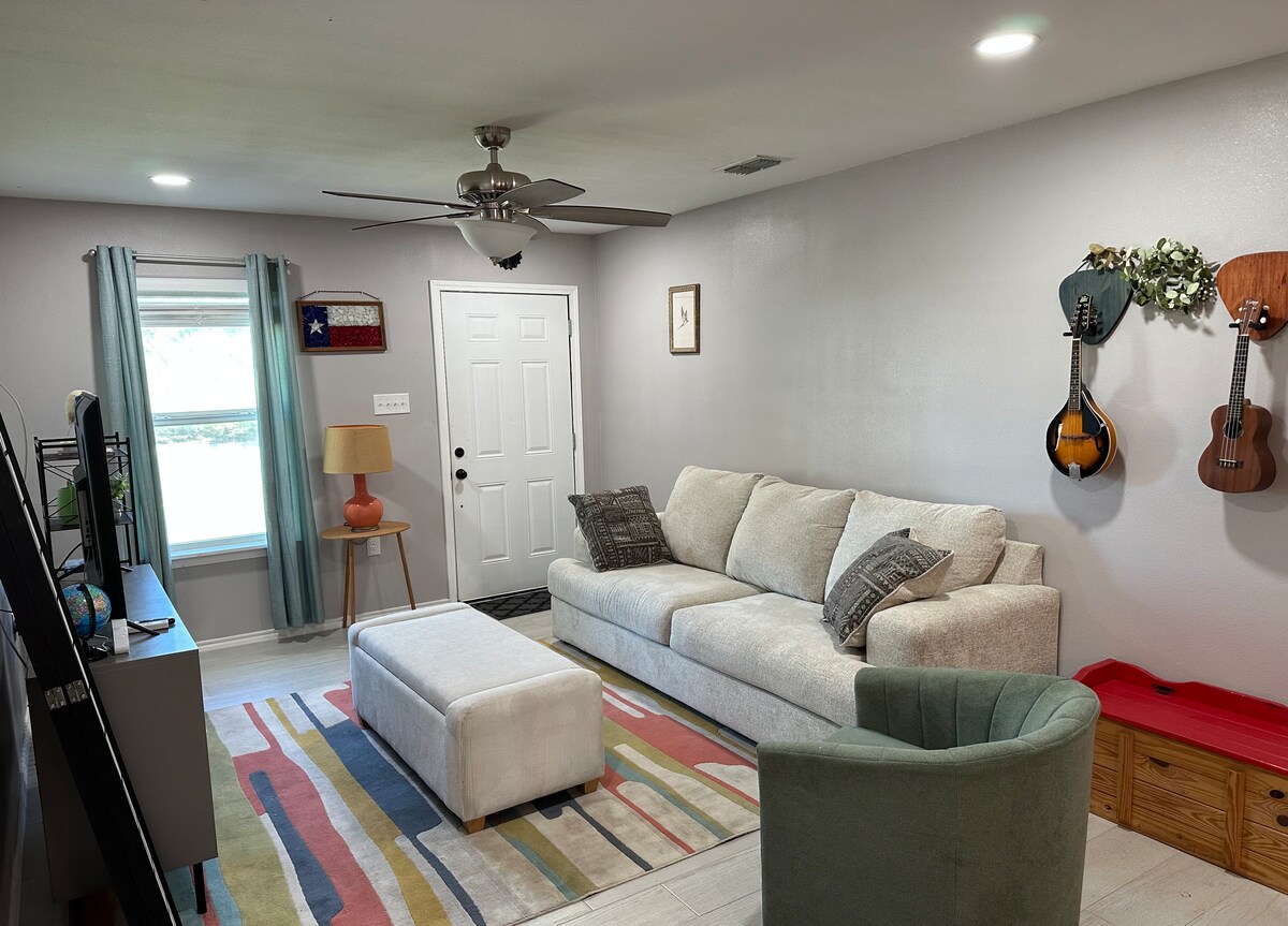 位於市中心。安靜放鬆的環境。坐落在3個城市地段上。自動鋼琴。設備齊全的廚房。餐桌設定 搖椅 門廊有螢幕。躺椅Netflix、Prime、Hulu、唱片機、卡拉OK、水軟化器、反滲透、樹木、🦜鸚鵡、西鐵路步道(West Rail Trail)開車或步行即可輕鬆前往布朗斯維爾市中心餐廳和夜生活、動物園、農貿市場、醫院和雜貨店。距離南帕德雷島(South Padre Island)、博卡奇卡海灘(Boca Chica Beach)和Space X約25英里。距離墨西哥也只有幾分鐘