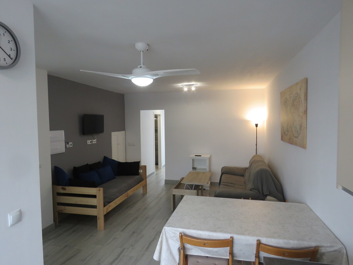 舒適的公寓,漂亮、乾淨和維護良好。 城市化,有2個泳池和4個槳板球場。 提供停車位和WiFi。 距離海灘僅1350公尺。 步行15-20分鐘或開車3分鐘即可抵達。 夏天,您可以在海灘附近停車,價格為1歐元/24小時。 雙人牀( 135x190 )和2張單人牀( 90x190和80x180 )、浴室、配有陶瓷爐的廚房、微波爐、普通和單劑咖啡機、洗衣機、廚房用具…電視 空調 牀上用品和毛巾。 Mantas. 露臺