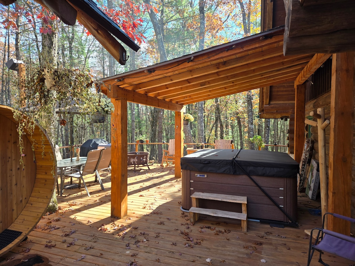 這間獨特的房源風格獨到。您會發現這間客用住房提供無與倫比的放鬆,配有大露臺,可欣賞蜂鳥和大自然。按摩浴池和桑拿房一定會讓您在白天或晚上放下繁忙的生活。室外和室內的寬敞用餐區非常適合情侶和浪漫。閱讀書籍或觀看電影,不受外界干擾。這間私人小屋提供當地皮划艇、徒步旅行、散步、釣魚和步道等優越的特色。森林放鬆等著您。