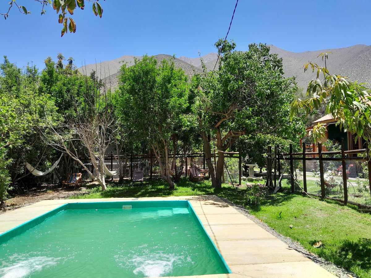 Rodeado de montañas y árboles frutales se encuentra nuestro precioso refugio elquino en 4 hectáreas De terreno , donde contamos con una casa rústica campestre full equipada para 7 personas, piscina, área con fogón, sector hamacas, terraza y parrilla, árboles frutales, viñedos e increíbles vistas a los cerros Mamalluca y Peralillo.