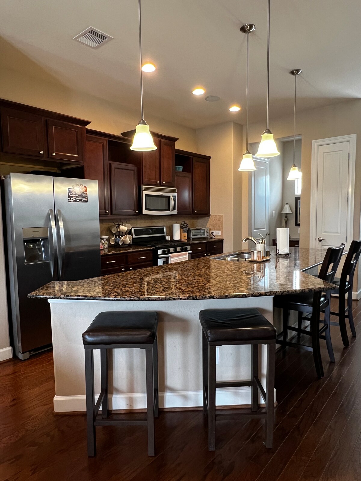 全新現代化私人套房,配有全套浴室和小廚房(微波爐和迷你冰箱)。位於有門禁的社區,有很多免費路邊停車位。使用智慧密碼鎖進入房間。 距離市中心、中城、醫療中心、George R. 布朗會議中心、所有運動場所、跑步小徑、狗公園、餐廳、酒吧和夜生活。街上還有一個很棒的健身房。關於這個地方的好評說明了一切。你不會後悔入住我們的房源!
