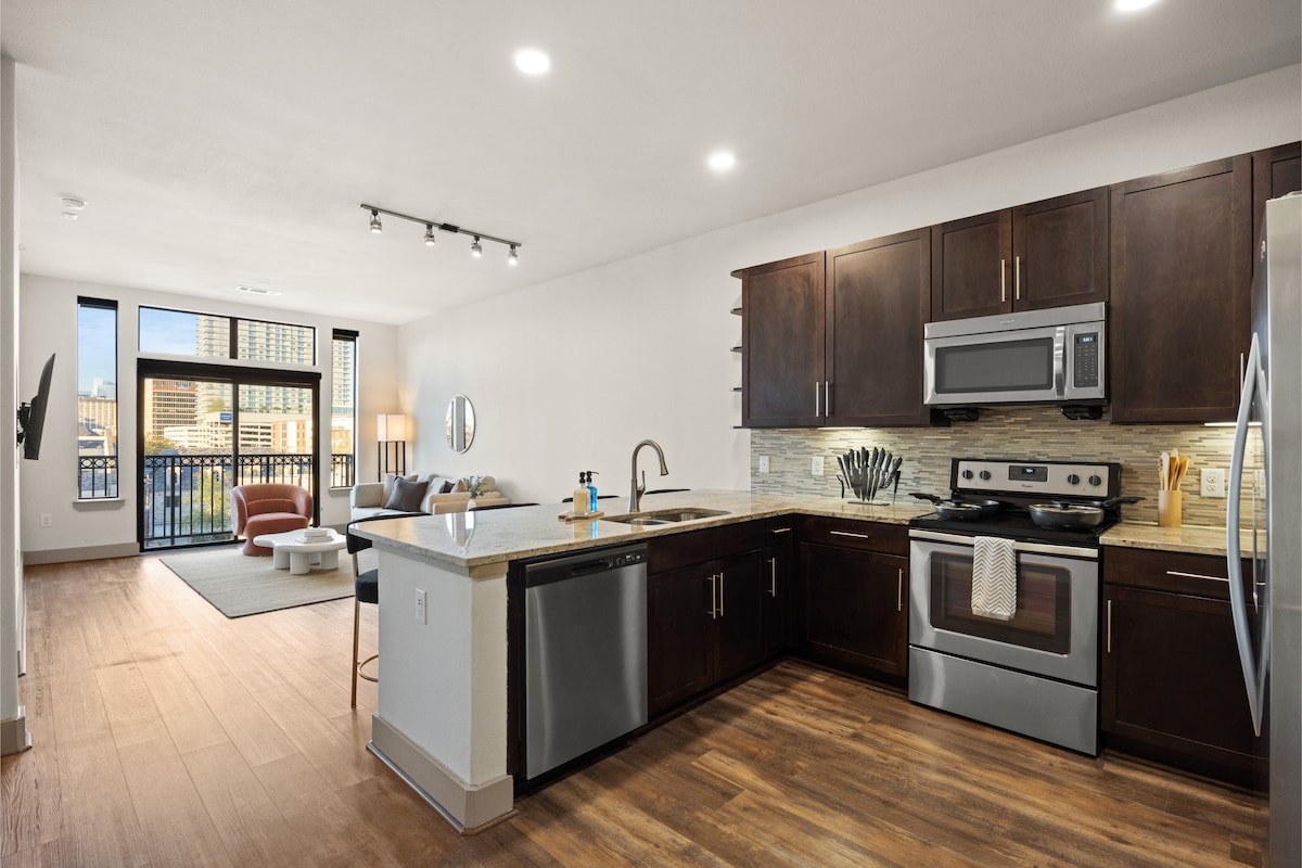 這是休斯頓市中心的度假勝地。靠近主要景點,包括George R. 布朗會議中心、豐田中心、醫療中心和美汁源公園。在享受自己時尚聖地的舒適的同時,體驗這座城市的脈動。 距離熱門餐廳(如The Breakfast Klub、Turkey Leg Hut、Lost & Found等)幾分鐘路程。 歡迎來到休斯頓市中心的短期綠洲。