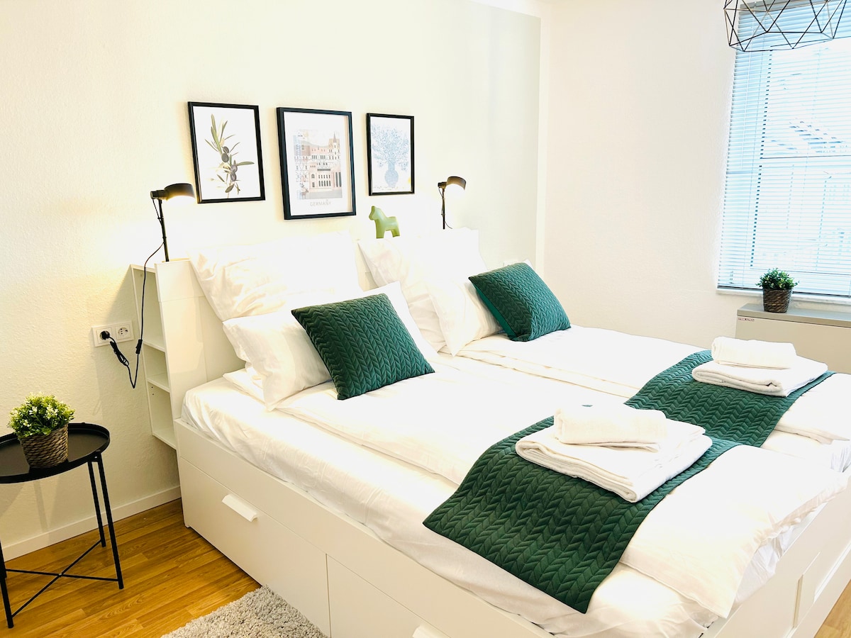 您好,我是 Jet,自 2019 年起,我一直很樂意出租一套 2 房公寓/單間公寓,配有豪華的私人浴室、按摩浴缸和空調。 房源位於綠色的 Hasseler Es 區。您可以在這裡放鬆身心,完全放鬆。最多可容納4位房客。禁止攜帶寵物。 街上有免費停車位。距離巴士站200公尺,距離商店500公尺。 提供2輛免費租用的自行車。