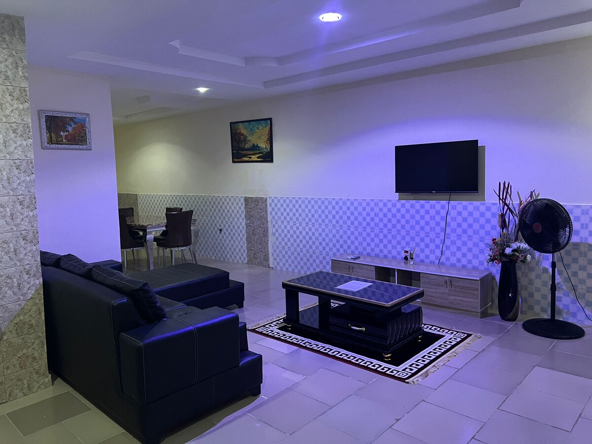 這個獨特的房源有獨特的風格。 這是一間單臥室和客廳的服務式公寓。 設備與服務包括: -全天候供電 -排煙器 -微波爐 -監視器攝影機 - DSTV/Netflix -電 視櫃 -熱水器 -斯諾克板 -乒乓球 -洗衣機 -大型停車位 -閱讀椅和桌 子-瓦斯爐 -冷凍庫