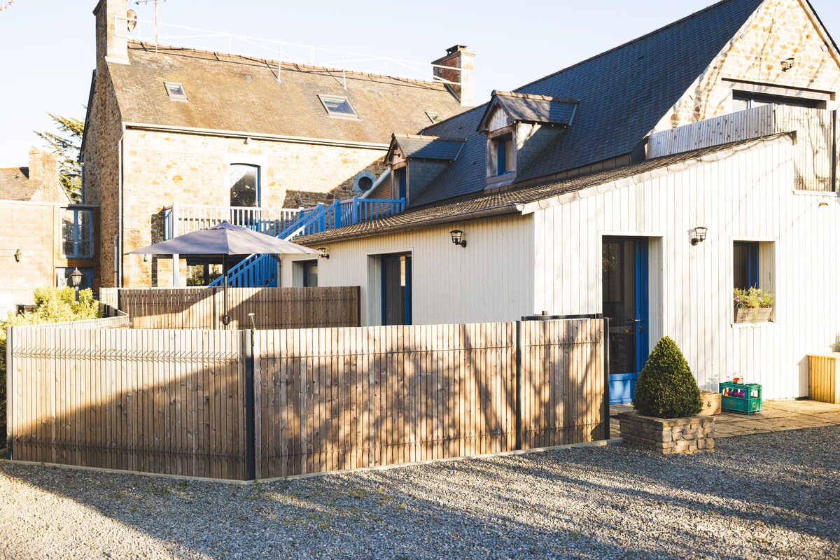 歡迎來到Amo之家,在鄉間的綠色環境中吸引您享受寧靜、簡單和歡樂,保證風景的變化! 距離村莊4公裏(麵包店/雜貨店酒吧/煙草店)距離dol de Bretagne 8公裏(超市、可麗餅店、餐廳、巴黎/聖馬洛TGV站。 20/30分鐘內的主要景點: Combourg 13公裏、Cancale、St Malo、Dinard和海灘25公裏,距離Mt St Michel 30公裏。 我們隨時為你提供建議