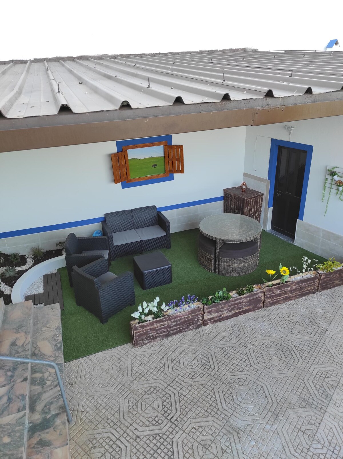 Studio open space with an independent entrance integrated in a house of contemporary architecture, where we live, next to a ruin of an old mill. Fantastic view of the countryside. Bed for 2 people, with the possibility of hosting another in an extra sofa (20 euros extra payment). Fully equipped kitchen. Magnificent bathroom. There is no central heating or air conditioning, but heater and fan are provided. The house is 25 minutes from the beaches of Comporta, Melides, Sines, etc. Fiber Internet.