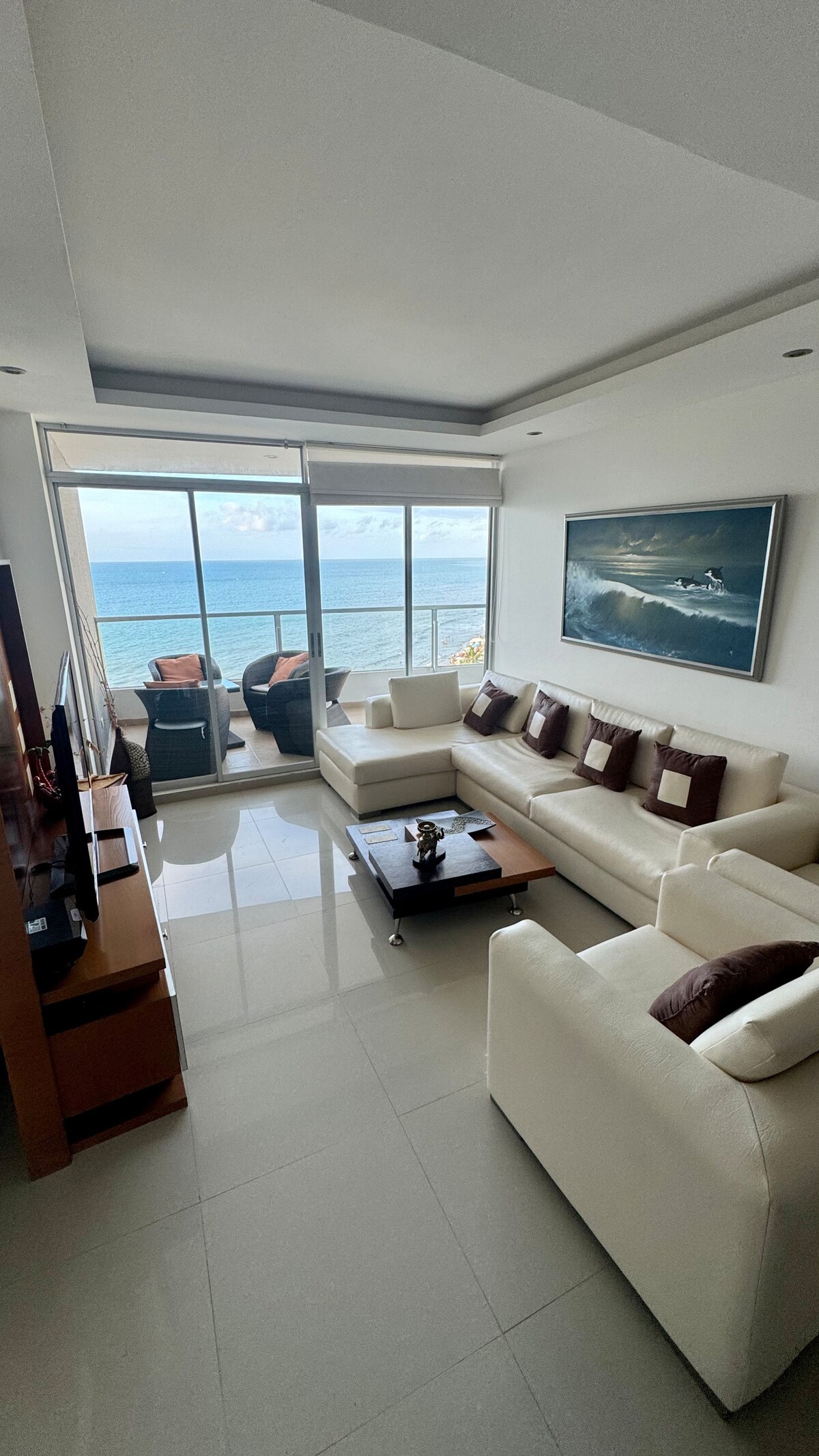 Departamento de lujo frente al mar, perfecto para parejas, familias o grupos que buscan relajarse en un entorno exclusivo junto al mar. Está completamente amueblado, equipado con electrodomésticos de alta gama. Cuenta con un amplio balcón con tina de hidromasaje y vista directa a la playa. Tiene dos habitaciones: una con cama King size y otra con dos literas y una cama adicional. Incluye acceso a tres elevadores y un espacio en el estacionamiento privado.