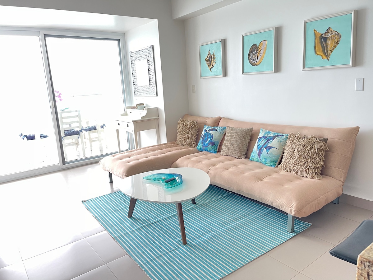 舒適的 2 間臥室公寓,4 張床、1 張沙發床、2 間浴室、設備齊全的廚房、洗衣機/烘乾機、陽台,可欣賞美麗的海灘景觀。 直播電視和網路!!大樓社交區域設有泳池、1 個停車位、海灘上有帳篷和椅子。我們提供值得信賴的工作人員服務,在您入住期間進行清潔並準備最好的翡翠調味料,讓您的假期成為真正的休息,非常適合與朋友或家人一起享受。