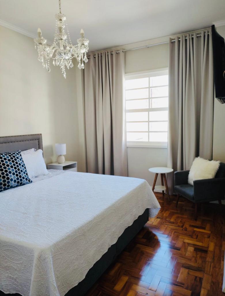 Este apartamento, pertencente à família há mais de 50 anos, agora reformado, apaixona qualquer um de imediato. À frente, a montanha do Cristo Redentor, com bioma predominante da Mata Atlântica; abaixo, as Termas Antônio Carlos, com suas águas que têm o poder de cura, e os imponentes jardins da praça central. Da janela da sala testemunha-se o movimento da cidade. Cafés, restaurantes, padarias, supermercados, estacionamento e comércio variado podem ser frequentados a pé.