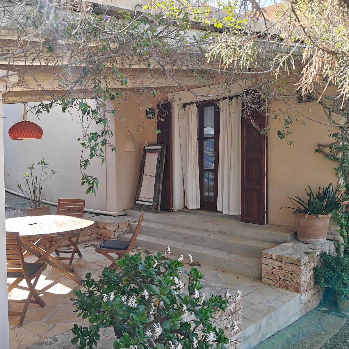 您的私人天堂 在伊維薩島 我們很樂意讓您入住我們的房源,甚至提供協助。 請將我們的房源用作睡覺、淋浴和用餐的地方,或在白天和晚上的活動之間放鬆身心。 最多可入住 6 人。 房子分為三部分,它們非常獨立,僅從花園連接。 主屋內有一間寬敞的客廳、一間臥室(加大雙人床)。其他部分各有一間房間(標準雙人床)和浴室。