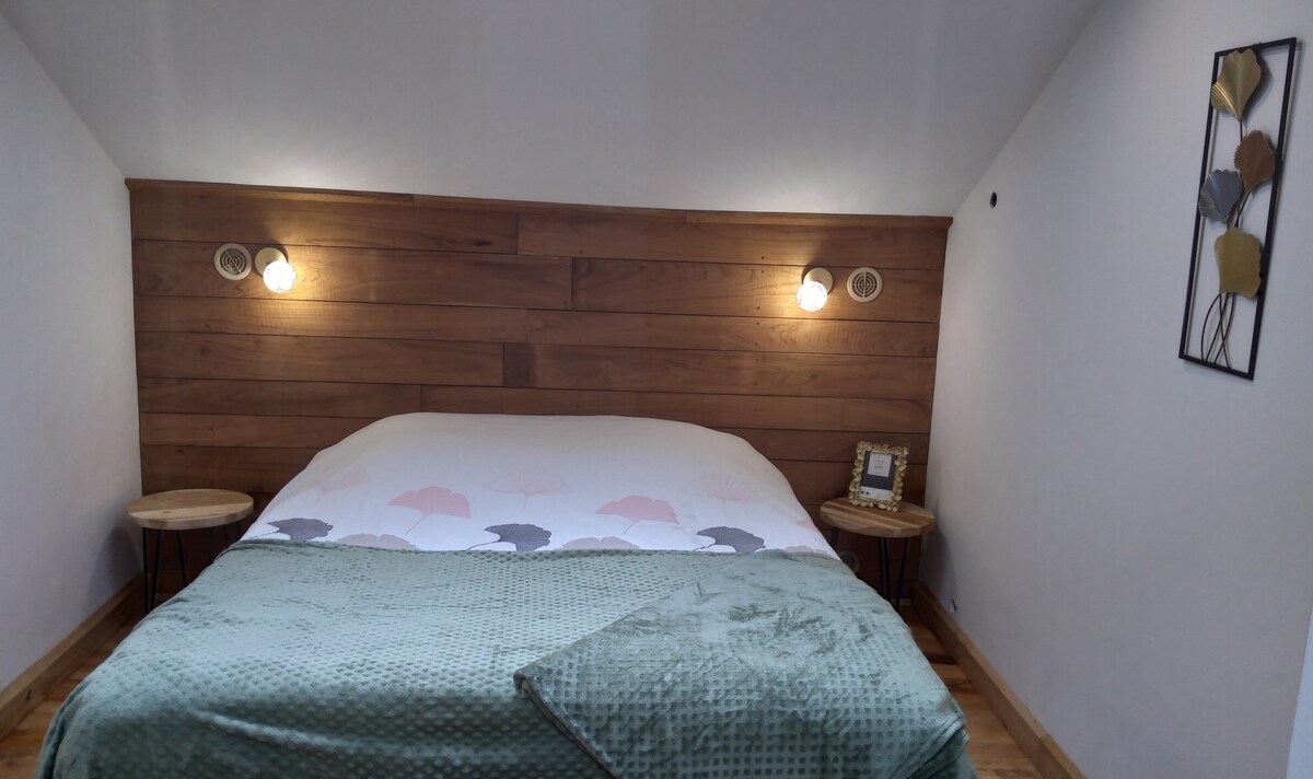 獨特的住宿體驗,置身於「哈比人」的氛圍中,坐落在一個野生花園的盡頭,可俯瞰城市景色。 通過徒步道(陡峭)進入。 住宿包括一間帶壁爐的客廳、一間小廚房、一間壁室、一間小浴室、一個可俯瞰山谷和城市(1公里)景觀的露臺,以及新增的木質加熱浴缸(夏季除外) 提供蠟燭和音樂,營造氛圍 非常適合情侶或永恆時刻的住宿!