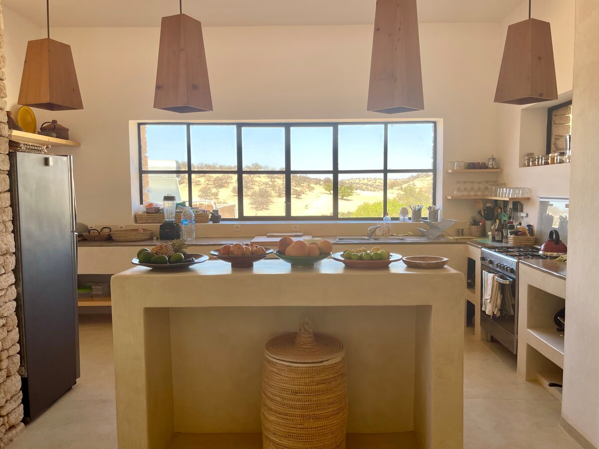 這間獨棟房屋位於索維拉以南30分鐘車程處,坐落在丘陵地形上,可欣賞到阿甘樹林的壯麗景色。 我們為您提供獨特的自然魅力環境中的非典型住宿,這是一個永恆的度假勝地,探索鄉村和正宗的摩洛哥,尊重環境、人類和自然資源、動植物。 非常適合與家人、朋友以及大自然和寧靜的愛好者一起入住。
