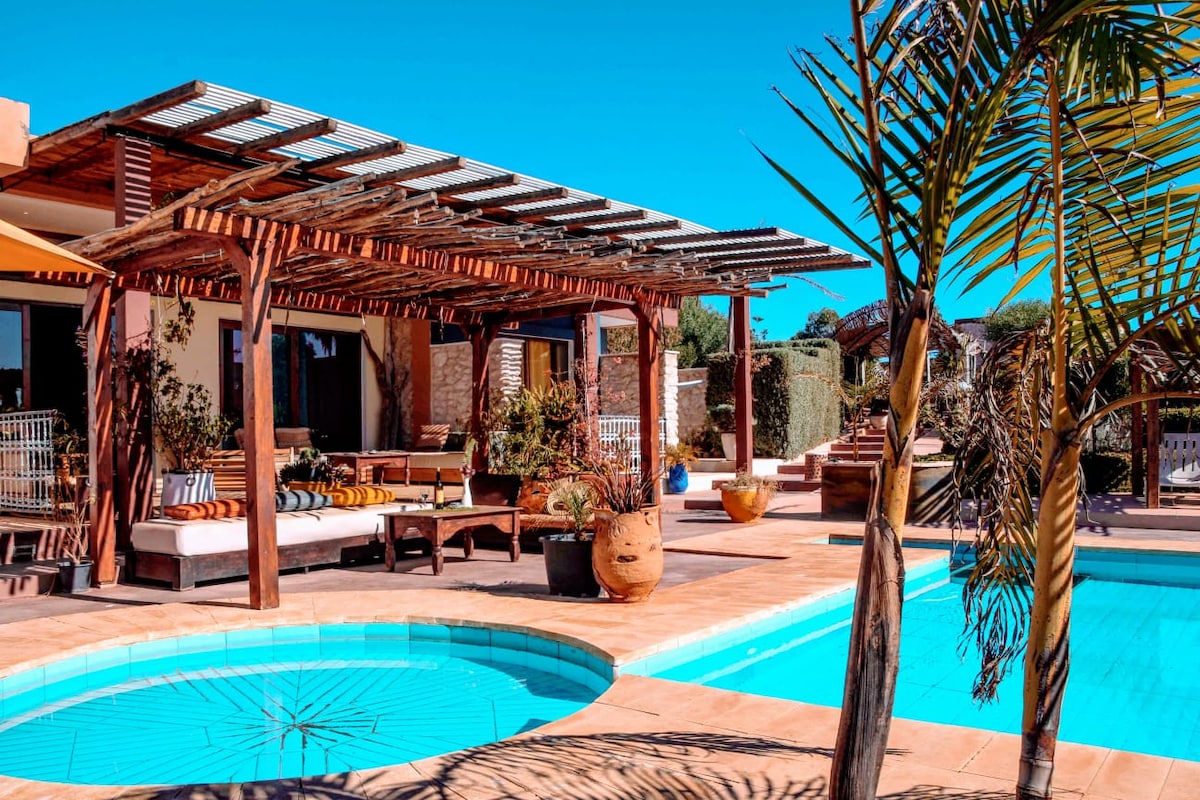 位於索維拉(Essaouira)的彩色戶外別墅,配有泳池和花園 無論您是尋求冒險還是想放鬆身心,這間別墅都是您難忘、獨特住宿的完美基地 裡面有非洲蠟印、歐洲風格和手工製作的摩洛哥裝飾,混搭出有趣、創意和假期氛圍! 無論您是躺在泳池邊,還是在露臺上沐浴夕陽,這座別墅都是一個與眾不同的寧靜度假勝地
