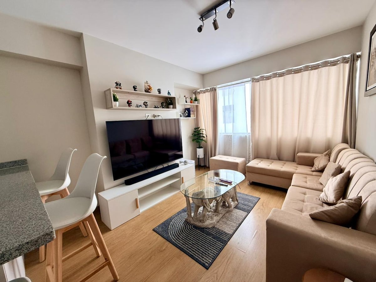 位於利馬市中心的現代舒適公寓,非常適合舒適、安靜和實用的住宿。 它有一張標準雙人床、臥室和客廳的電視,配有Netflix、MAX和Win TV、高速Wi-Fi、設備齊全的廚房和洗衣區域,配有洗衣機和晾衣架。 24小時全天候保全、無可挑剔的清潔和戰略位置,距離魔法水迴路和Edgardo Rebagliati醫院僅10分鐘。 非常適合休息、工作或觀光旅行,環境安全。