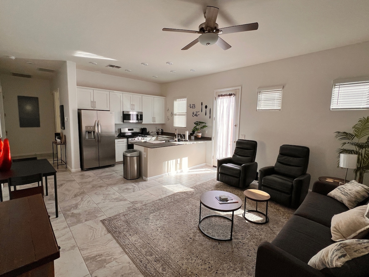 享受這棟全新豪華美麗的3居室房源,配有度假村風格設備。 此房源坐落在南山( South Mountain ) ,距離鳳凰城/坦佩市中心( Downtown Phoenix/Tempe )僅20分鐘路程,同時毗鄰美麗的山道! 房子備有充足的必需品,美麗的草坪供所有人享用! 從徒步道、加熱泳池、熱水浴缸、健身房、火坑、坐浴盆、山地瑜伽墊和乒乓球,使用最快的WiFi ,您不會想離開這個家!