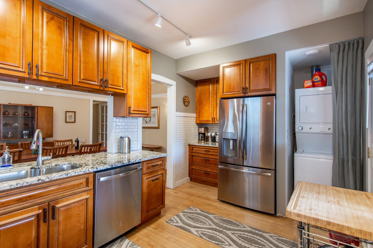 入住這座經過精心修復的歷史地標莊園的Coach House ,距離密歇根湖的海灘只有一個街區,靠近城鎮和NU。 享受整間經過翻修的客車房,包括一間配有加大雙人牀和書桌的大臥室、陽光充足的客廳/餐廳、配有爪腳浸泡浴缸和淋浴間的全套浴室,以及配備設施的廚房。 空間可配備充氣床墊,供額外房客使用。 主屋內還有三樓的客用套房。