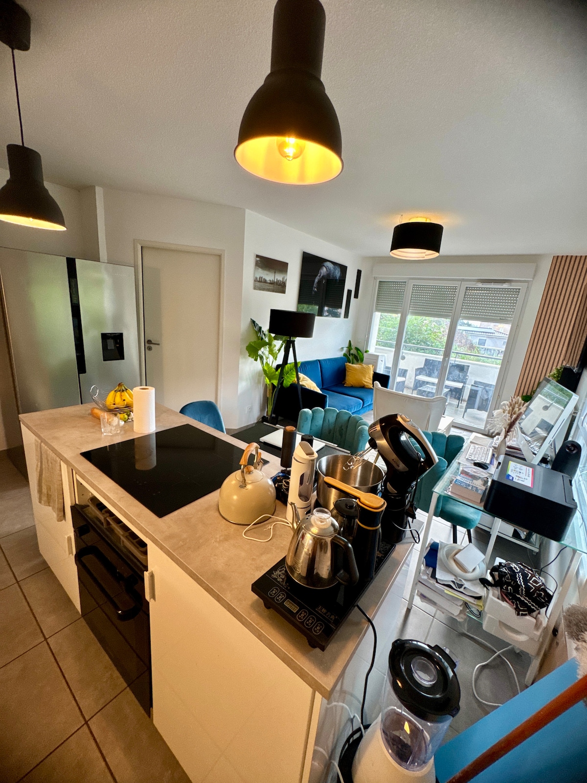 Logement spacieux et serein grâce aux nombreuses plantes à l’intérieur et sur la grande terrasse de plus de 15m2. Accessible en voiture ,le centre ville de Grenoble a 15 min et les stations de ski à 45 min L’appartement se compose d’une très grande pièce de vie, équipée d’un poêle et d’une climatisation réversible,d’une télé de 160 cm, d’une cuisine équipé avec frigo américain,et d’une mezzanine, un vrai cocon avec vue sur les étoiles grâce au velux.