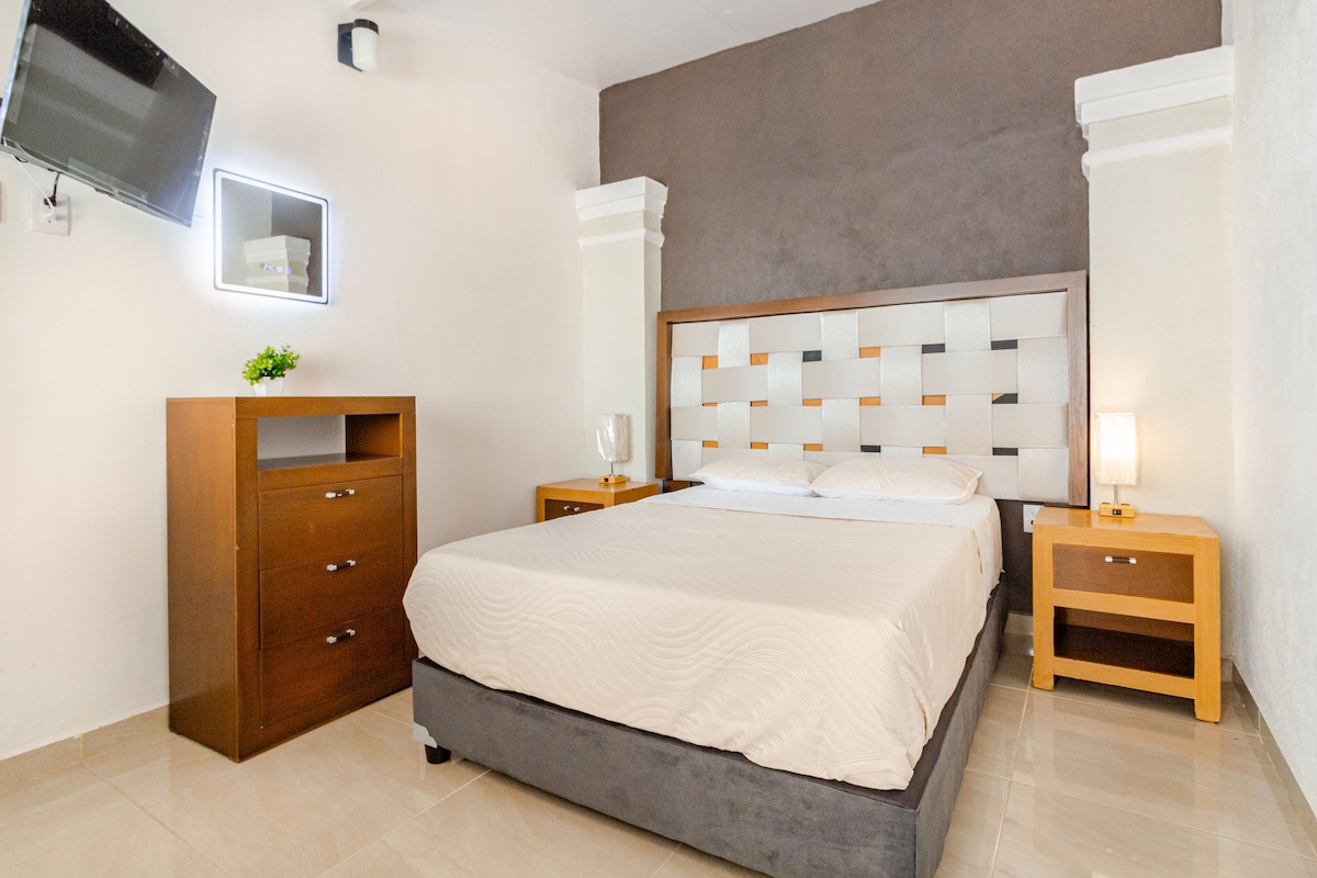 這是一棟位於三層建築中的別墅。 它有一間臥室、全套浴室、配有必要用具和電器的廚房、餐廳和雙人沙發床,從陽臺可以欣賞到佩尼亞德貝爾納爾 (Peña de Bernal)