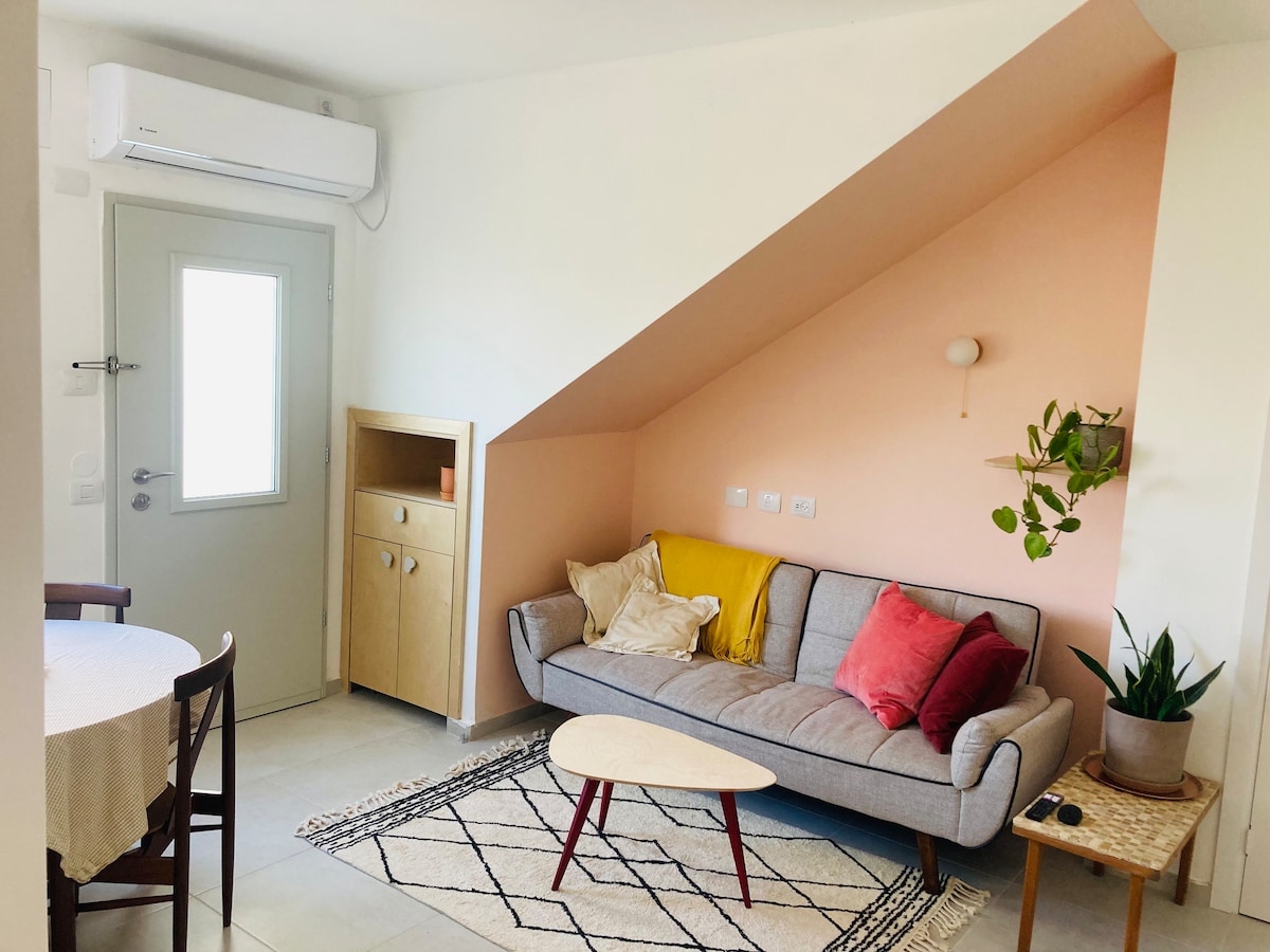 安靜舒適的兩間客房公寓,配有小前院和私人停車場(鎖有電動門) 公寓設備齊全,配有一張全新舒適的雙人牀+ 2張沙發,可通往1張雙人牀和2張單人牀! 以太網+ WIFI連線、智慧電視、頻道應用程式( NextTV )和Netflix。 步行5分鐘即可抵達當地超市。 距離Herzliya火車站30公尺的巴士站\市中心\ IDC私人學院。