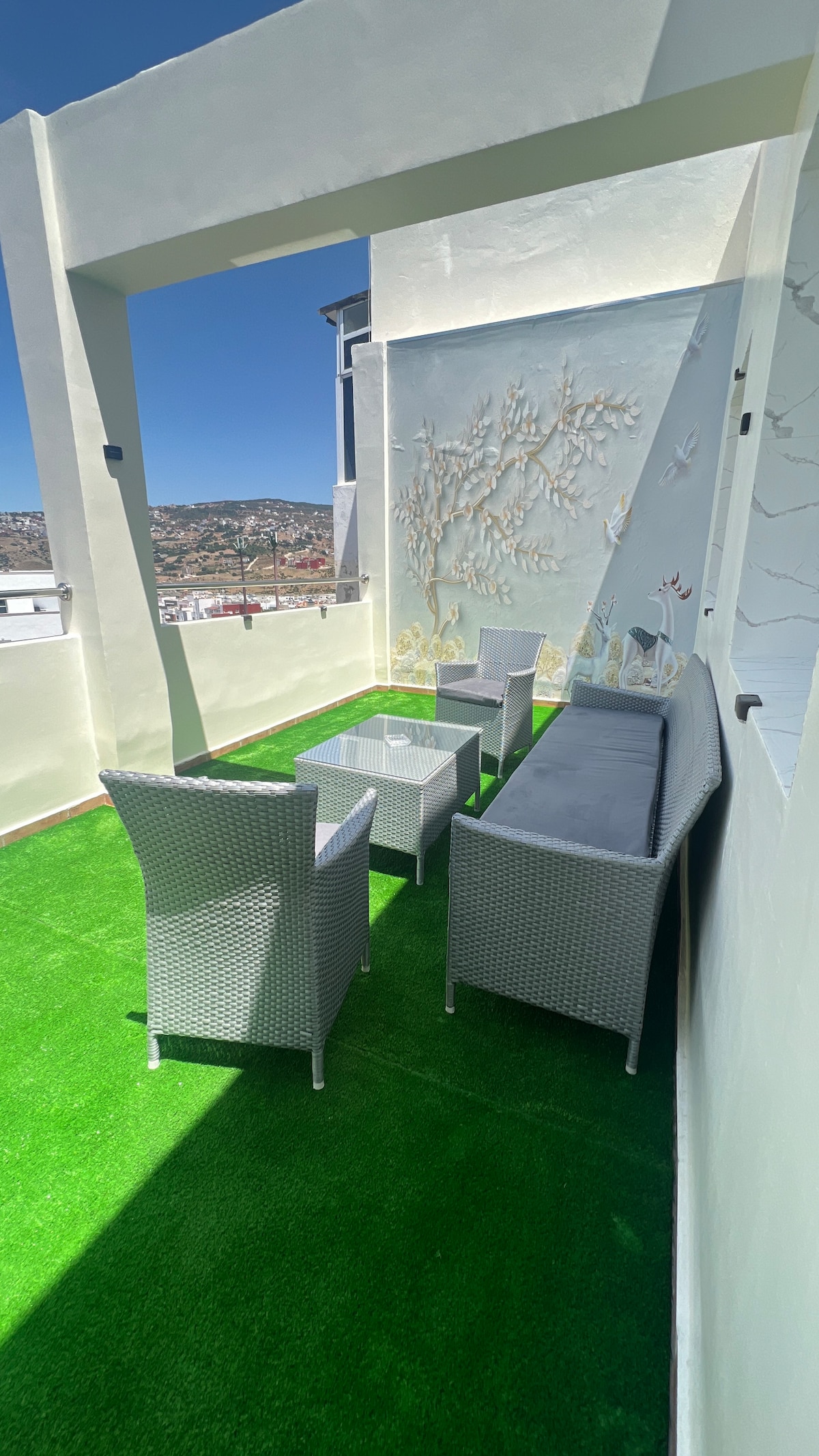 迷人的公寓,兩間設備齊全的臥室,配有WiFi ,地理位置優越,距離Malabata 5分鐘路程。 我們寬敞的客廳為您提供舒適的空間。 您也可以使用我們的私人露臺,在戶外享用美食,或只是欣賞壯觀的山間日落。 公寓配備了現代化和設備精良的浴室。 這裏廚房設備齊全,可供您準備最喜愛的餐點。 立即預訂。