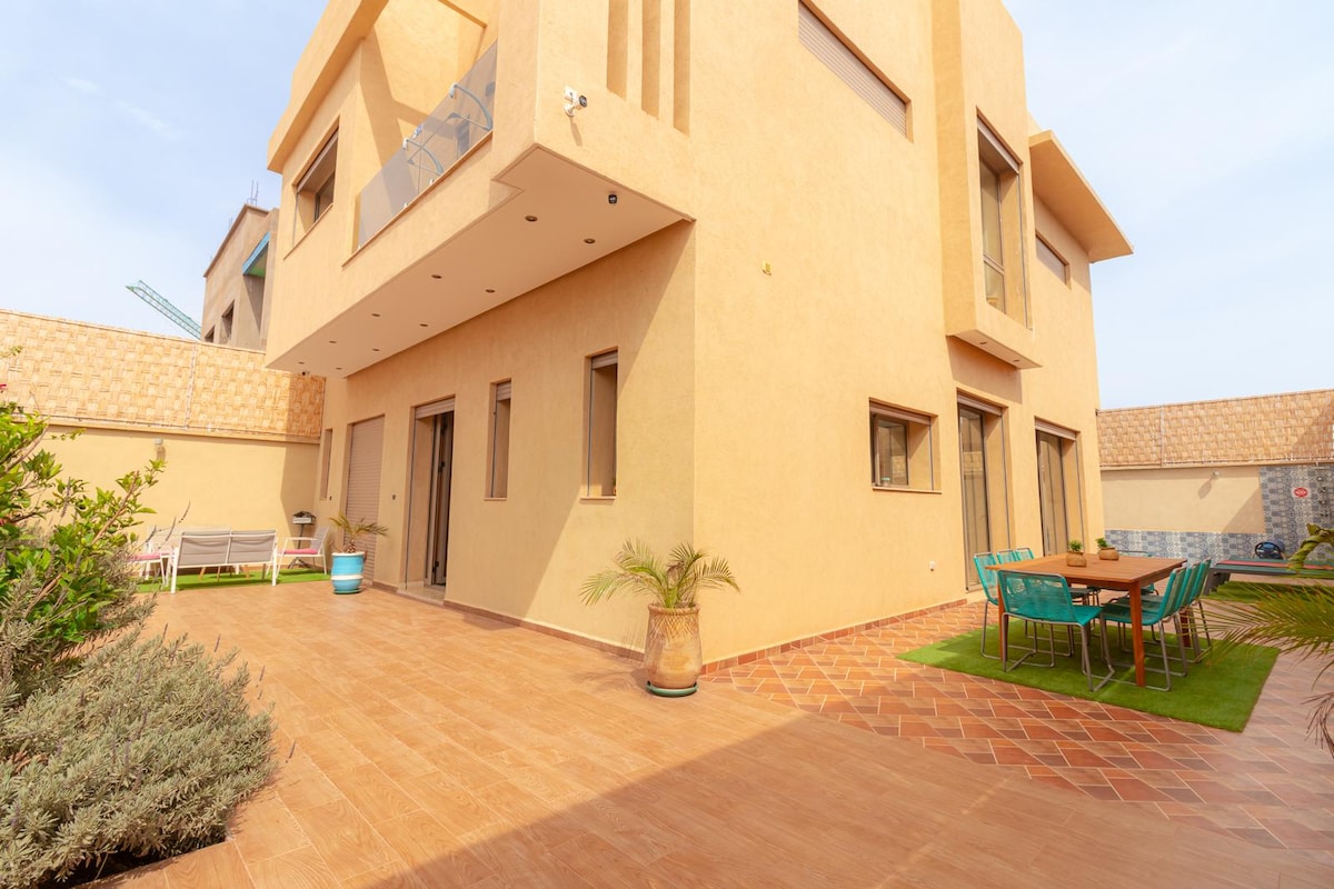 歡迎來到Alanaé別墅🌴 我們的現代別墅距離馬拉喀什市中心僅12分鐘路程,距離最美麗的高爾夫球場僅5分鐘路程。 我們的別墅裝潢優雅,提供溫馨精緻的環境,有3間寬敞的主套房和一間專為兒童設計的套房。 您會找到難忘住宿所需的所有舒適性,美麗的溫水泳池周圍有茂密的花園,非常適合放鬆身心,享受陽光。