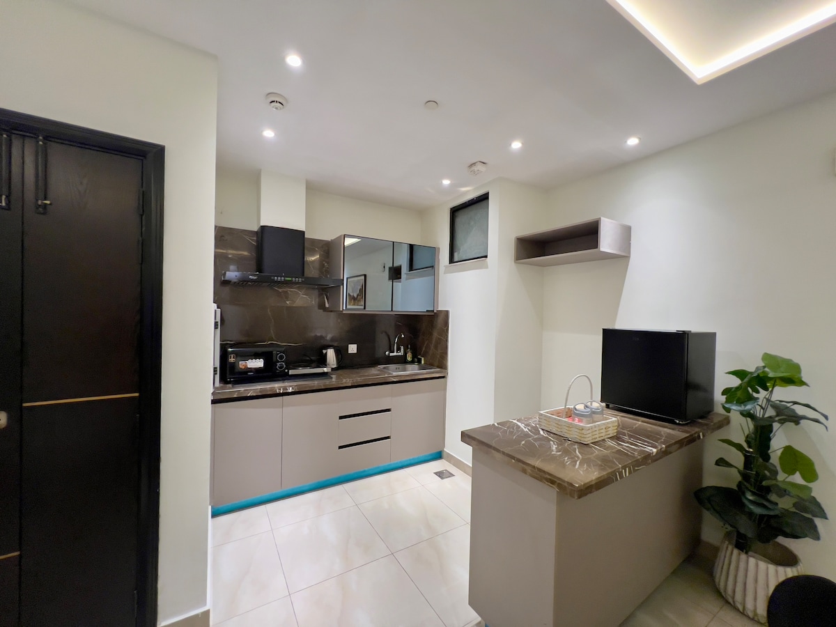 入住Indigo精品公寓4樓的時尚單間公寓,位於拉合爾充滿活力的中心。 非常適合旅客、情侶、家庭入住,它的特色是: 舒適的休息室,讓您放鬆身心或趕上工作 智慧電視,配有YouTube或串流娛樂盒 設備齊全的小型廚房,適合簡單烹飪 整潔舒適的浴室,備有乾淨毛巾 步行即可抵達Gulberg的餐廳、咖啡廳和商店,前往拉合爾也很方便。 現代化、方便、位於市中心—您的完美家