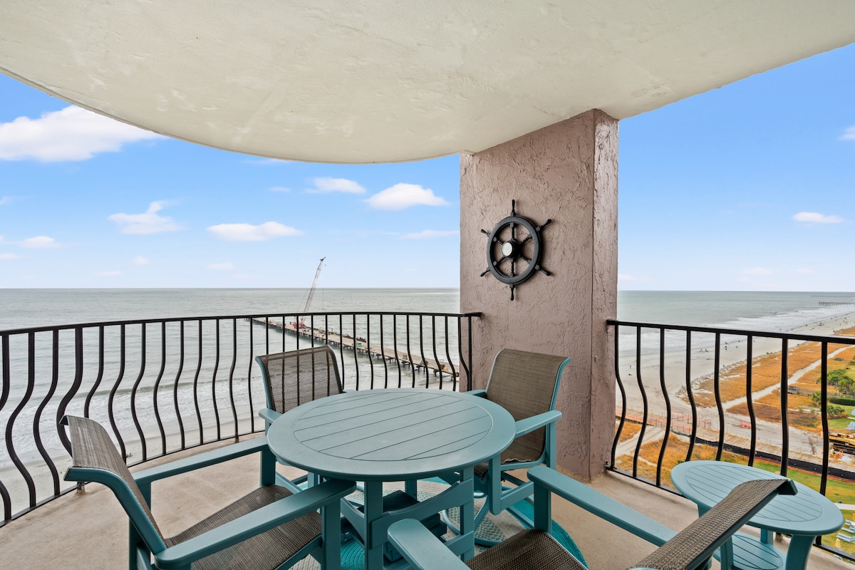 寬敞的陽臺和壯觀的海景讓這間時尚的公寓脫穎而出!從這個空間的幾乎每個房間都可以看到海灘,您可以使用外面的泳池和可愛的海灘咖啡廳。 這是享受餐廳、在海灘上漫步或什麼都不做的最佳位置!當您不在外享受陽光或默特爾海灘(Myrtle Beach)所提供的一切時,您會發現公寓本身是舒適、裝潢精美和超級舒適的。