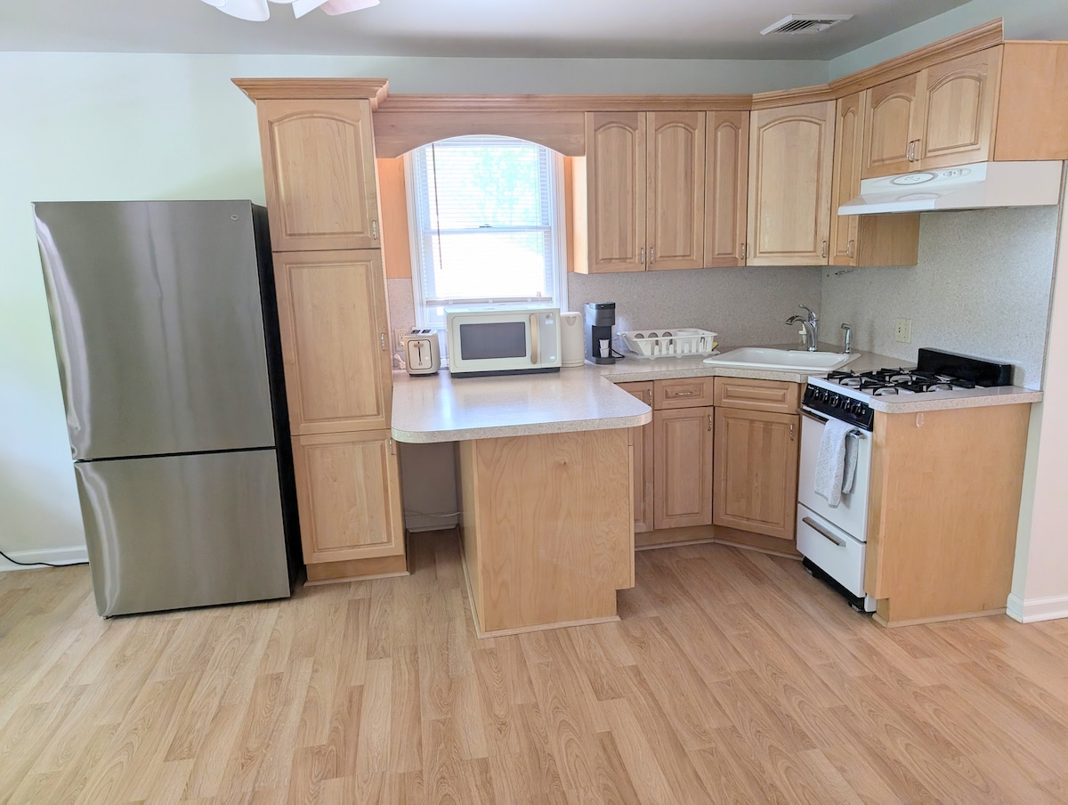 歡迎來到新澤西州范伍德(Fanwood)的舒適家園! 寬敞的2間臥室/1間浴室公寓,獨立房屋一樓有自己的入口,提供舒適和隱私。 非常適合家庭或團體。 設備齊全的廚房、室內洗衣機/烘乾機、中央暖氣和冷氣。 寧靜、適合家庭入住的區域。 步行即可抵達公園、餐廳、咖啡廳、電影院。 距離Watchung Reservation徒步和騎馬8分鐘。步行10分鐘即可抵達前往紐約市的Fanwood火車。距離紐瓦克機場20分鐘。 輕鬆前往曼哈頓