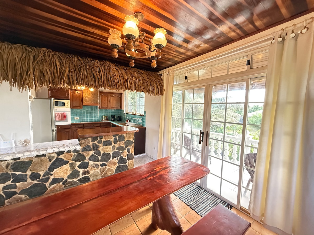 如果您正在尋找寧靜熱帶環境中的寬敞住宿,這個可愛的房源就在海邊,佔地2英畝,周圍有果樹和茂密的山脈。 您將享受您自己的私人海灘區域,前面有清澈的綠鬆石海水和美麗的浮潛。 搭乘皮艇探索潟湖,在花園裡欣賞日落,享受戶外熱水淋浴,白天曬日光浴,晚上觀星,在火坑裡烤肉。 這裡真的是天堂!含汽車。