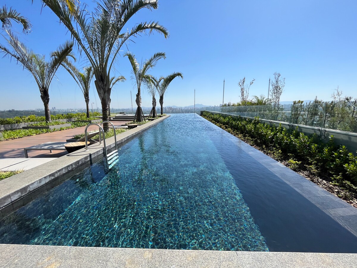 Estúdio Novo com Vista Panorâmica — 24º Andar com Piscina Infinita e Estilo! Desfrute de São Paulo com conforto e estilo em nosso estúdio montado com carinho para recebê-lo. Localizado no 24º andar com *vista envidraçada de 180° para a Marginal Pinheiros*. Um refúgio moderno, ideal para quem busca praticidade, comodidade e uma experiência diferenciada na cidade.