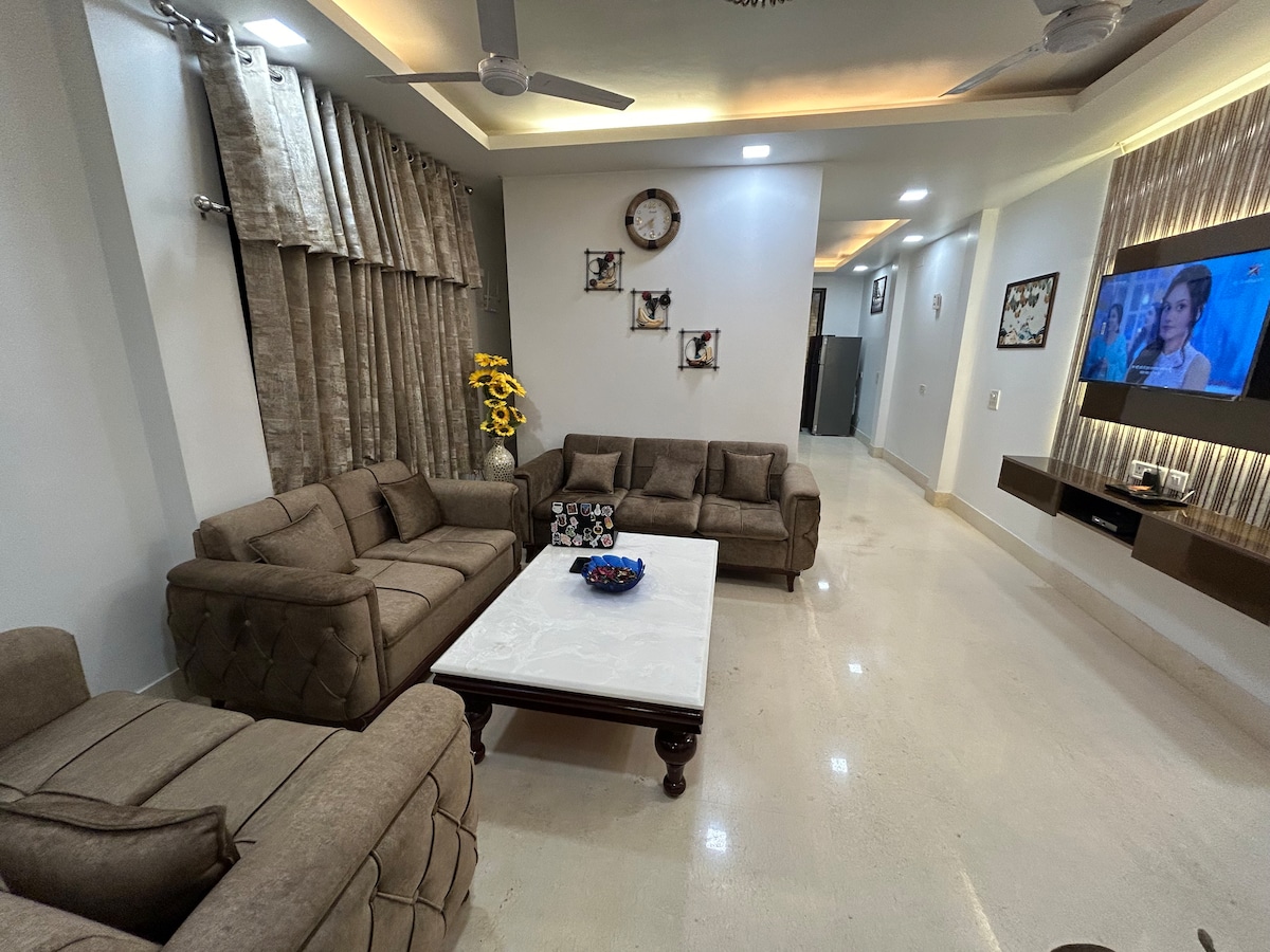 您在南德裏的時尚2BHK 歡迎來到我們美麗的雙臥室公寓,這顆角落的寶石坐落在南德裏Lajpat Nagar的中心。 三面環繞著鬱鬱蔥蔥的綠色公園。 享受全套空調房間、設備齊全的廚房(配備餐具)、LED電視、熱水間歇泉,甚至可輕鬆使用電梯。 步行2分鐘即可抵達Lajpat Nagar市場,在那裡您可以找到商店、美食等。 距離Lajpat Nagar地鐵站僅4分鐘路程。