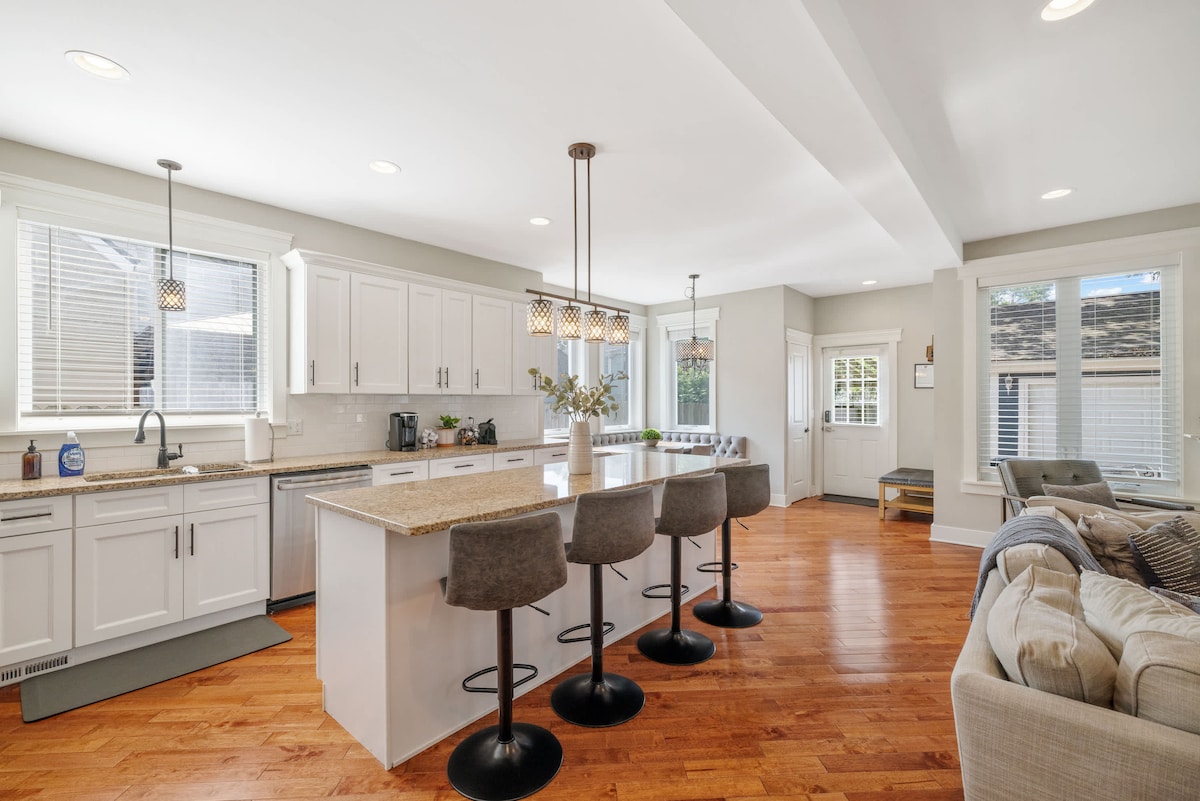 Ferndale retreat! This home has a living room for five (laying), a pro office, art-filled walls, premium sound, wet bar, and a fully equipped kitchen. Walk or bike to downtown, a brewery, and jazz club. Includes 6 kettlebells, 350 G Wi-Fi, 2 Smart TVs, 2 bikes, a king bed in the basement bedroom, and laundry. Espresso For show only. Baby gate for basement. May need to move wet bar for kids.