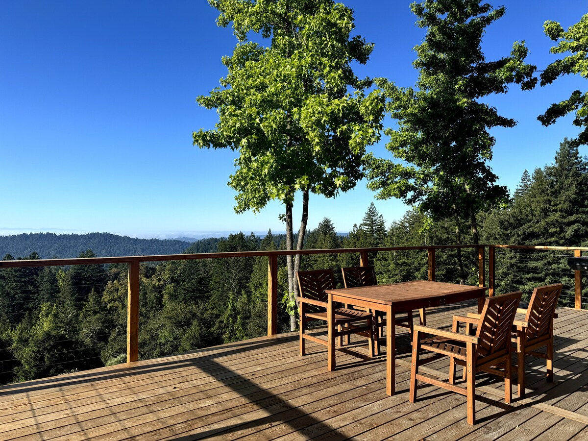 這座山間家庭住宅非常完美,可欣賞聖克魯斯山脈的壯麗景色。大型包覆式露台為室內外生活提供完美的空間,而室內則提供溫馨的感覺,配有燃木壁爐和所有深受喜愛的家居必需品。位於紅木森林,可欣賞260度的景觀。距離聖塔克魯茲海灘10分鐘,距離蒙特雷40分鐘,距離赫爾蒙山中心和費爾頓音樂廳的音樂會5分鐘。非常適合觀光和活動。