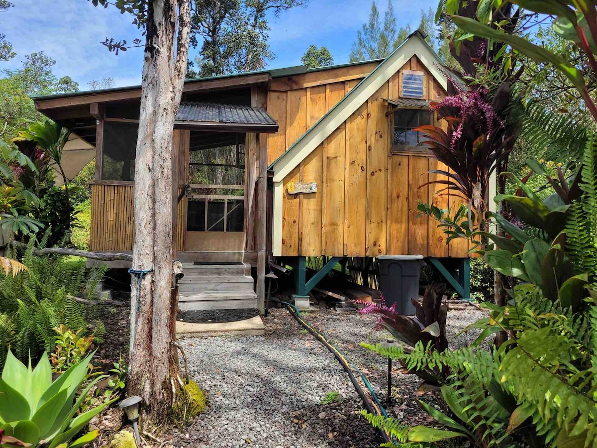 舒適的睡眠小屋,位於茂密的雨林中,距離夏威夷州希洛25分鐘。 來嘗試在私人環境中過著離網生活。 配備太陽能燈和丙烷熱水。 5G網路。開車前往火山國家公園、希洛、帕霍亞、瀑布、徒步道和各種海灘僅需很短的車程。 配有瓦斯爐、全尺寸冰箱和洗衣設施的廚房可與房東和其他房客共用。