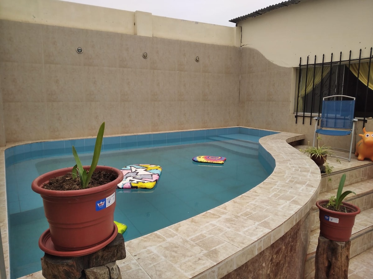沉浸在鄉村的美麗鄉村住宿,距離Ferreñafe市僅4公裏,周圍環繞著大自然的綠色,鳥兒的歌聲無疑會為您帶來美麗的覺醒,非常充足的空間,在您住宿期間提供更大的舒適和超級放鬆。 我們有120平方公尺的泳池、5間舒適的房間、4間浴室、酒吧、烤肉、露臺、花園、撞球桌、WiFi、蟾蜍遊戲、足球桌、棋盤遊戲、Netflix、DirecTV。