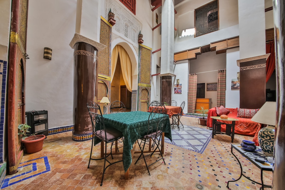 The "Honey Moon Suite" is a very special room, decorated with love and full equiped with all the modern comodities in an traditional Riad in the center of the medina of Fes where you will be great located! Our service is excellent, every day room and installations cleaning, we made a lot of improvements to make your security and health be the priority. You will feel like at home. - Covid Free-New cleaning measures - Air Conditioner - Dinners service, safe food at the Riad - Free breakfast