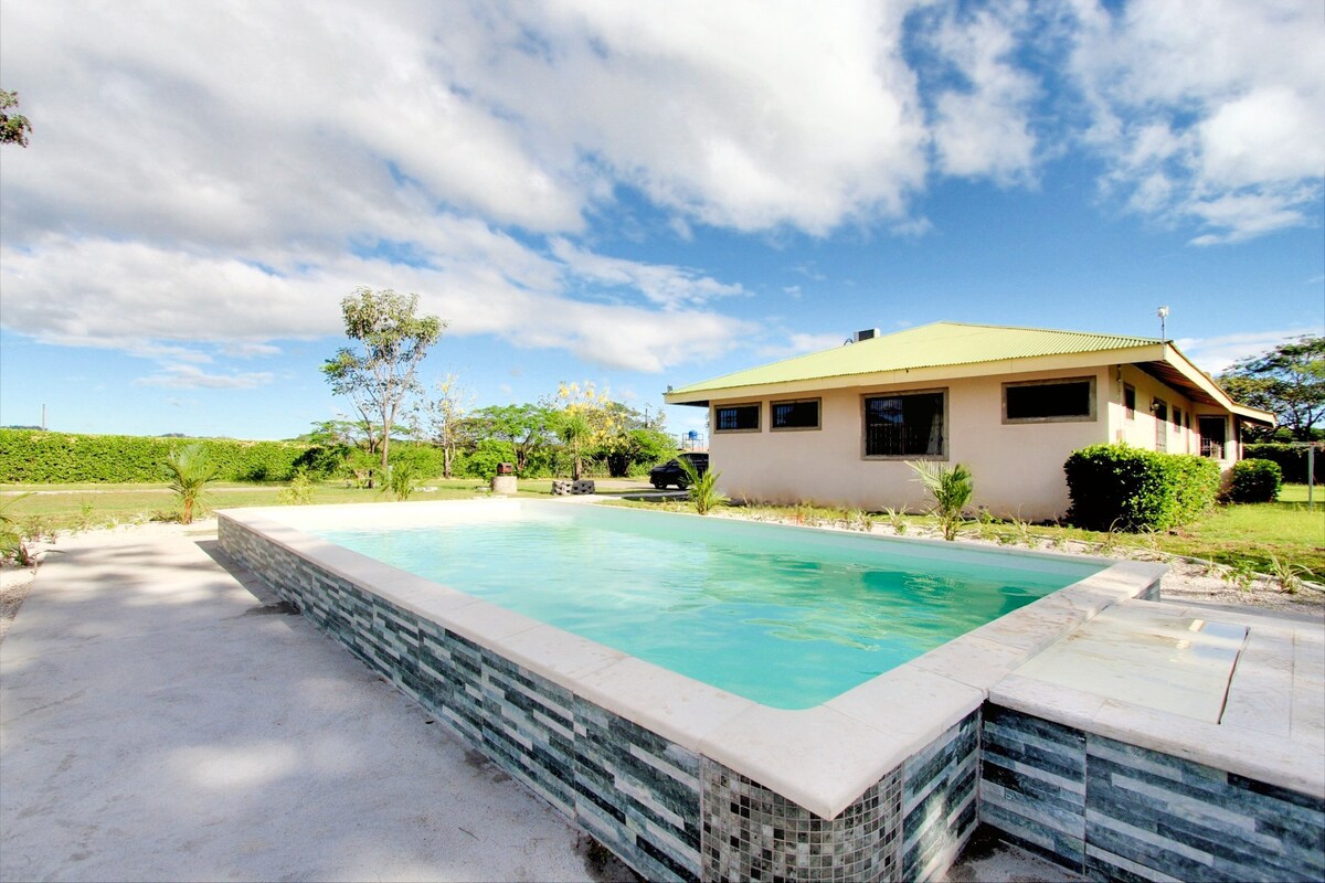 這間優質的房源空間寬敞,可以帶著全家老小一同入住! 2張床、2間浴室套房,配有泳池和按摩浴缸。大型遮蔭涼亭和燒烤! 靠近機場、利比里亞市中心的購物中心,開車即可抵達哥斯大黎加最美麗的海灘。 乾淨且新建,配有大廚房和所有電器。套房配有空調、熱水、洗衣機、有線電視和快速網路,大門內有安全的停車位。 來享受全年溫暖的天氣吧!