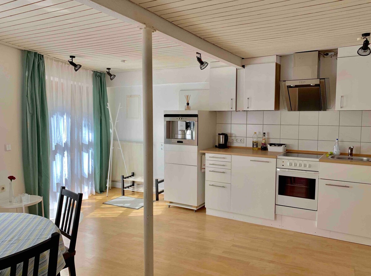 位於伯恩豪森菲爾德施塔特的漂亮安靜的 1 間新公寓(別墅 2),有獨立入口、獨立浴室、獨立廁所。最多可容納3人。 設備:電視、WiFi、配有洗碗機和全套設備(+咖啡機)的新廚房、床單、毛巾、洗衣機和烘乾機。中心(步行3分鐘),有許多便利設施,如麵包店、超市、餐廳、酒廠和直達的S-Bahn。-機場5分鐘-斯圖加特市中心25分鐘。