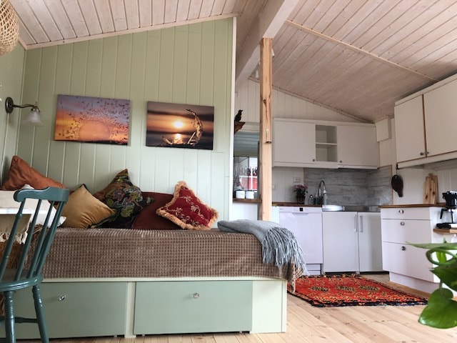 在冬天,您可以充分利用隔壁的Slalom斜坡,只需穿上slalom滑雪板,直接在小徑上開始,或在風景優美的環境中進行越野滑雪。 這也是一個漂亮而安靜的地方,您可以在外面讀一本好書、電視篝火等放鬆身心。 冬天經常可以看到北極光 😀 夏季有很多機會在山上和田野中徒步旅行,秋季有很大的區域可以採摘漿果和蘑菇。