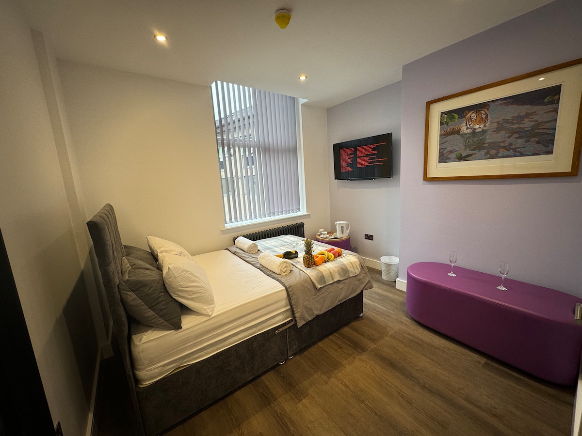 Discover your chic retreat in the heart of Leeds! This brand-new, 2-bed, 2-bath apartment comfortably fits 4 guests. Featuring a modern design, a fully equipped kitchen, and a private juliette balcony with city views, it's the perfect base for leisure or business. Enjoy sophisticated city living on the 10th floor with all the comforts of home.