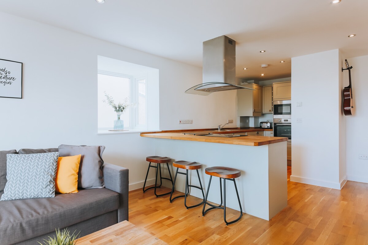 逃到我們現代化的2臥室海濱度假勝地,非常適合情侶和家庭入住。 從Fistral Beach步行幾分鐘即可抵達,享受私人遮蔽式露臺和設計精美的室內設計,配有兩間全套衛浴。 這間安靜的海濱公寓距離風景優美的海岸步道僅幾步之遙,提供安靜的度假勝地。可舒適入住4人。 獎勵-我們將支付您在大樓後面的市政停車場停車費用
