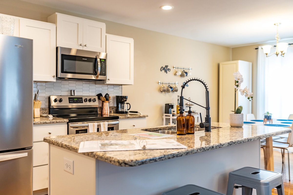 享受位於我們國家歷史名錄( National Register of Historic Places )房源的前司機宿舍,並進入莊園之家( Manor House )的寧靜花園。 廚房設備齊全,舒適的全尺寸牀應該能提供良好的夜間休息。 步行即可抵達市中心的活動。 有多個座位區域,可欣賞與主屋共用的1英畝花園。 我們無法接待未滿 16 歲的房客。