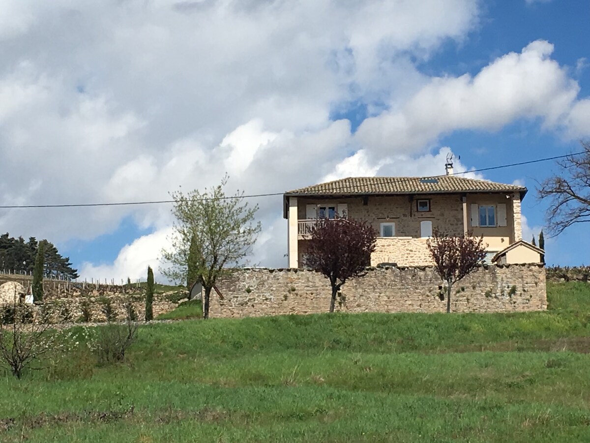 這座美麗的房子位於博若萊和勃艮第之間,坐落在葡萄園的中心,是夢想中的度假勝地!佔地寬敞,室內裝潢舒適,設備一新。徒步旅行、跑步、山地自行車的起點。距離博若萊 (Beaujolais) 酒莊 15 分鐘,可參加葡萄酒品鑑之旅;距離科爾莫蘭什 (Cormoranche) 休閒中心和 Touroparc 遊樂園 15 分鐘,附近有許多著名景點。房屋與屋主的房屋相鄰。在酒莊品嚐葡萄酒,搭配起司拼盤!(視供應情況而定)