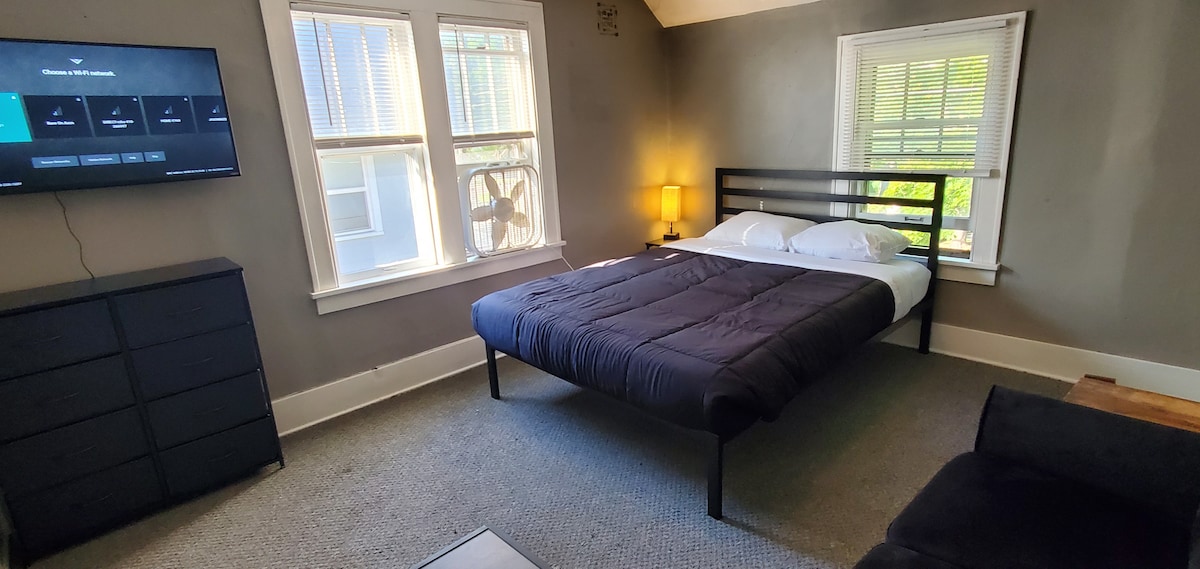 New studio apartment with separate entrance. Fully furnished kitchen, new Queen sized bed, all new furnishings including desk area, Wi-Fi, lots of storage space, new refrigerator, stove, microwave, 42" TV, and dishwasher. Unit includes your own washer and dryer and has a gorgeous lake view in front. Located close to movie theaters, bowling, restaurants, shopping malls, grocery stores, large state recreational park, skiing and convenient to airports. Bathroom inside unit with 2 recliner chairs